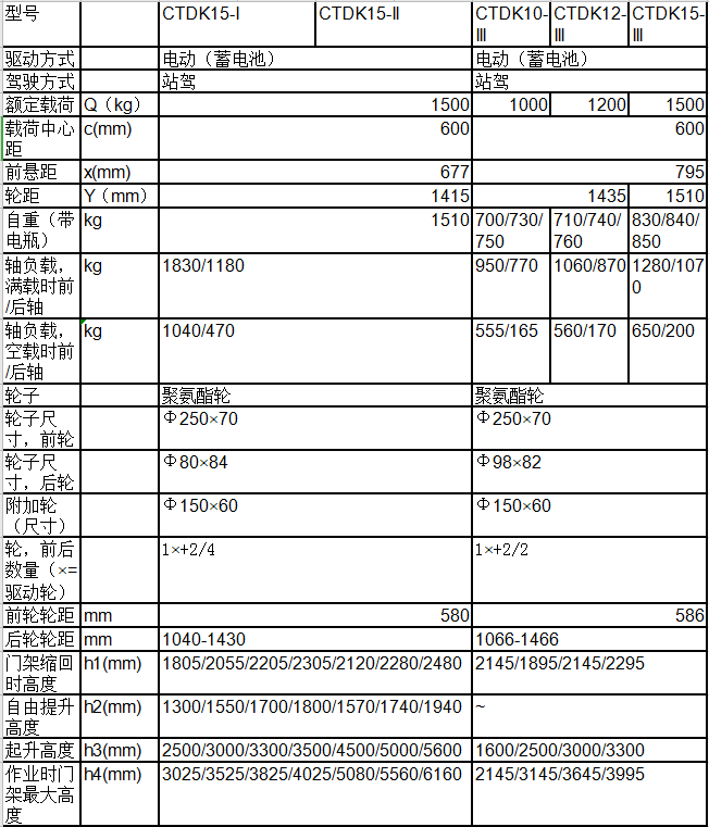 產(chǎn)品優(yōu)點: CTDK15站駕式寬腿堆垛車采用寬腿車架,鍛打式貨叉設計,貨叉寬度可調(diào),使用各種托盤作業(yè), 載重量1.0噸,1.2噸,1.5噸,起升高度從1.6米到5.6米,配置高低均由您根據(jù)工況