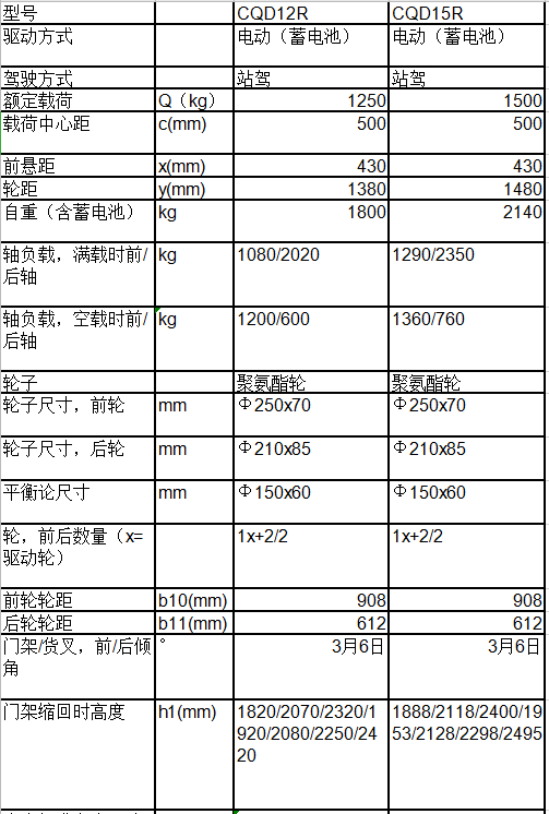 * 表示必填采購:全電動堆垛車CQD12R/15R