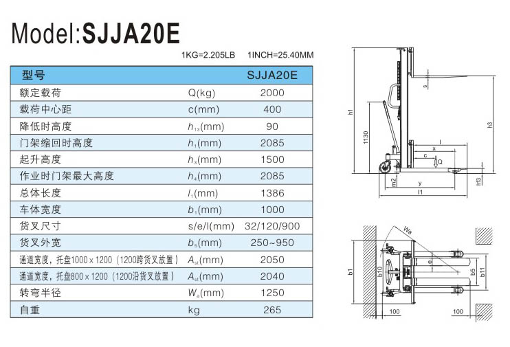 * 表示必填采購:手動(dòng)堆垛車SJJA20E