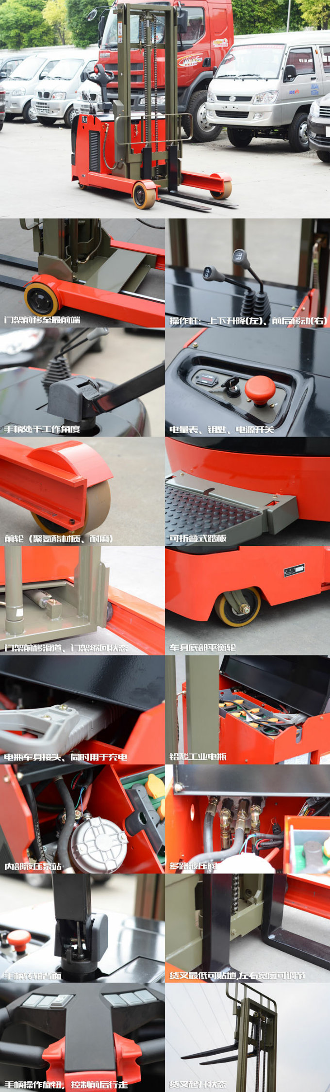 便捷,安全設(shè)計(jì): 交流電機(jī),無(wú)需更換碳刷; 具有良好的坡道氣動(dòng)性能; 采用液壓轉(zhuǎn)向系統(tǒng),裝箱靈活輕便; 安裝可調(diào)節(jié)扶手,適應(yīng)不同身高的駕駛員; 多功能顯示儀表具有電量顯